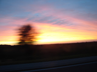 We left around five o'clock for the four-hour drive home. I slept most of the way, but each time I woke up I noticed that it was getting darker. Right at sunset, we were coming down Interstate 75, crossing a place that M says is called "Payne's Prairie," named for a Seminole Indian chief who used to live in the area. Jeannie was driving. M looked out of his side window and noticed a straight cloud line that he thought was the trailing edge of a cold front that had moved through northern Florida that afternoon. He turned the flash off on his camera, so it wouldn't glare in the window, and started taking pictures. Here are a few of the results: